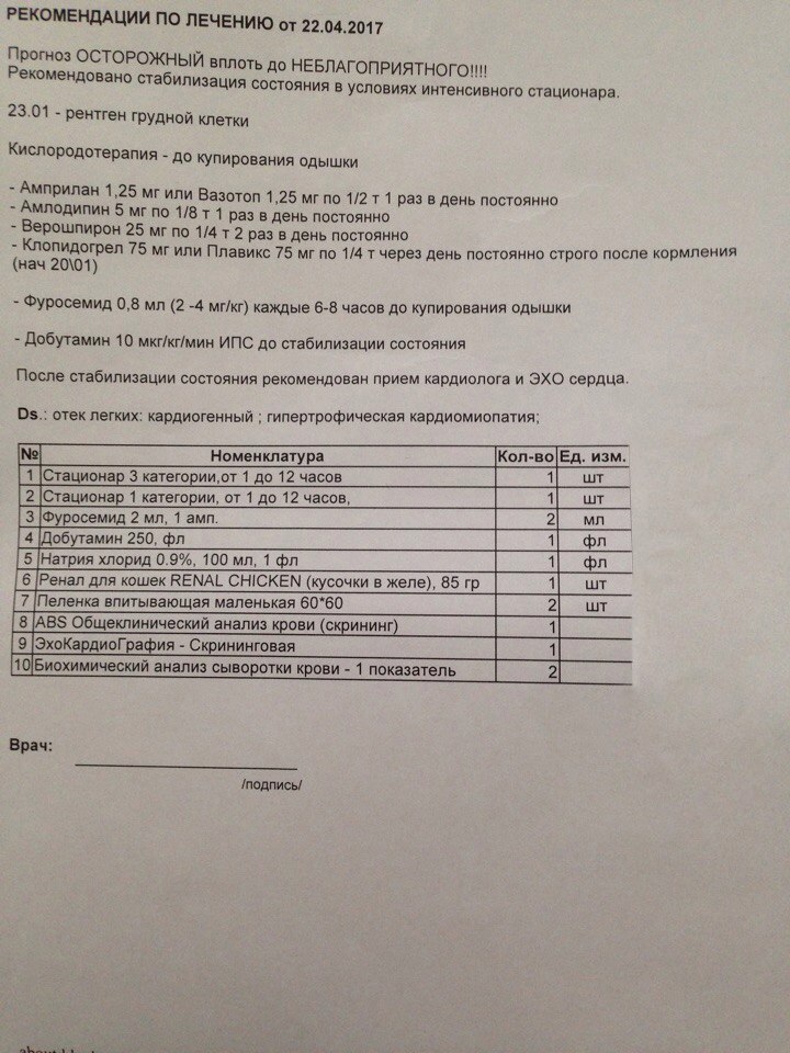Верошпирон кошке при отеке легких