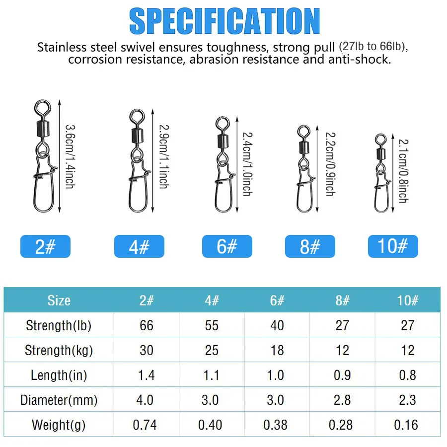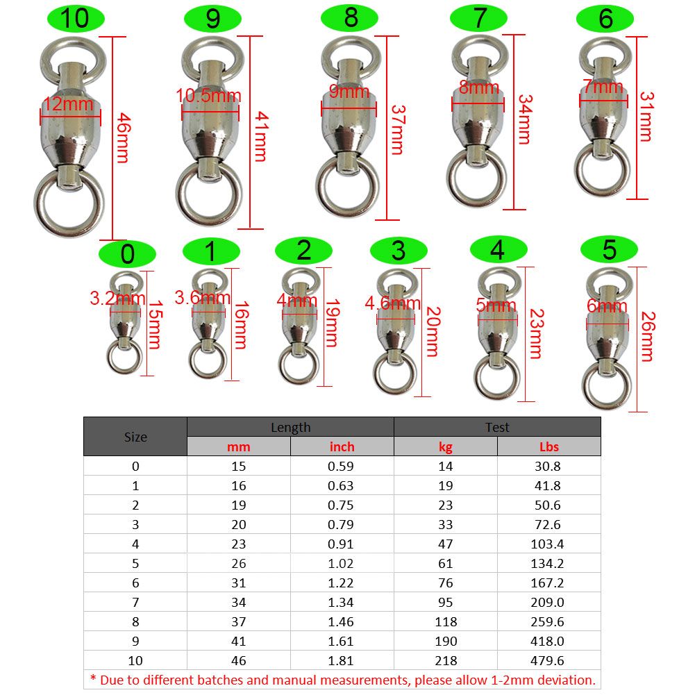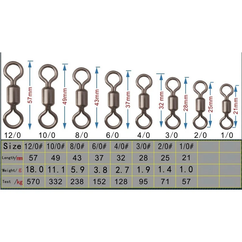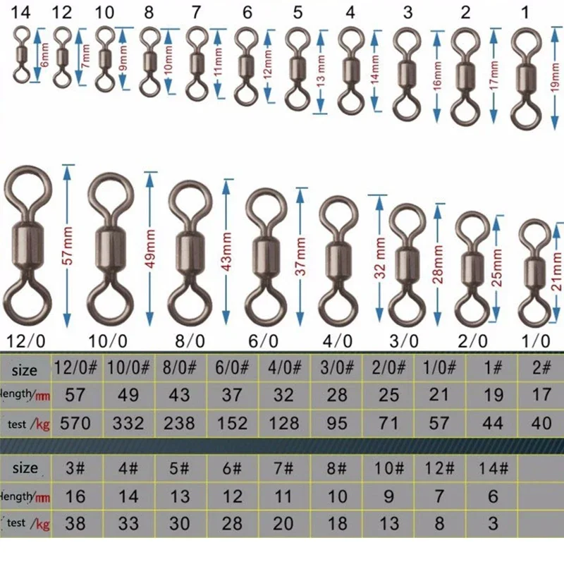 Вертлюги для рыбалки размеры