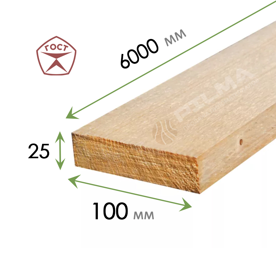 Вес доски 25х100х6000