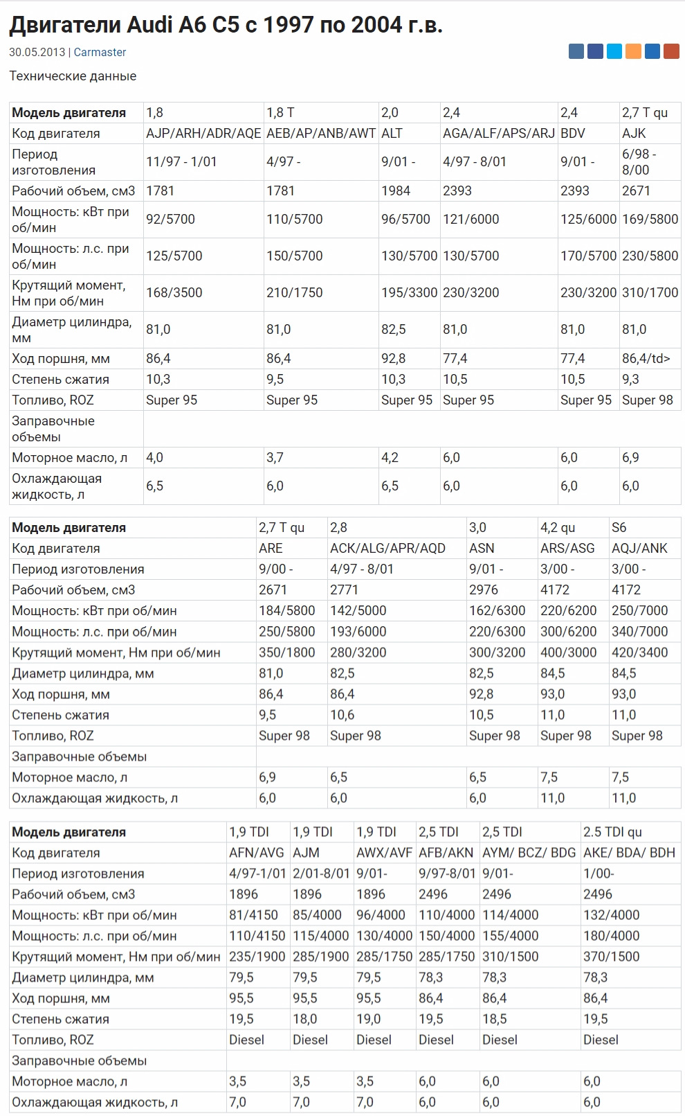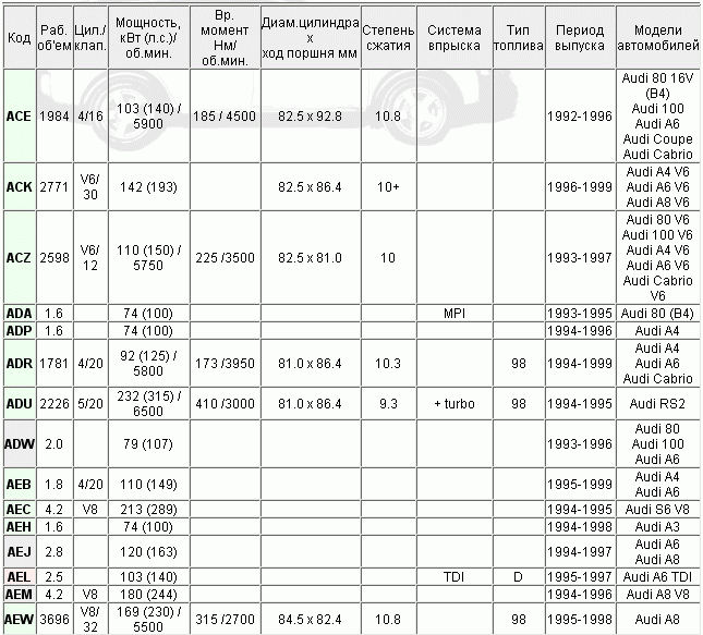 Вес двигателей ауди