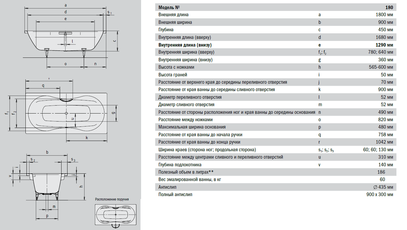 Вес металлической ванной