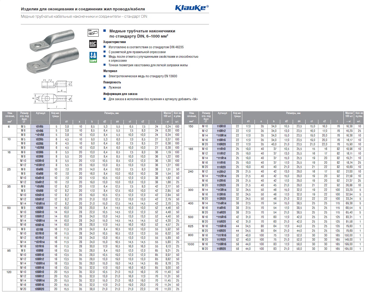 Вес наконечников тмл