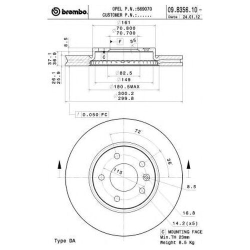 Вес передних тормозных дисков
