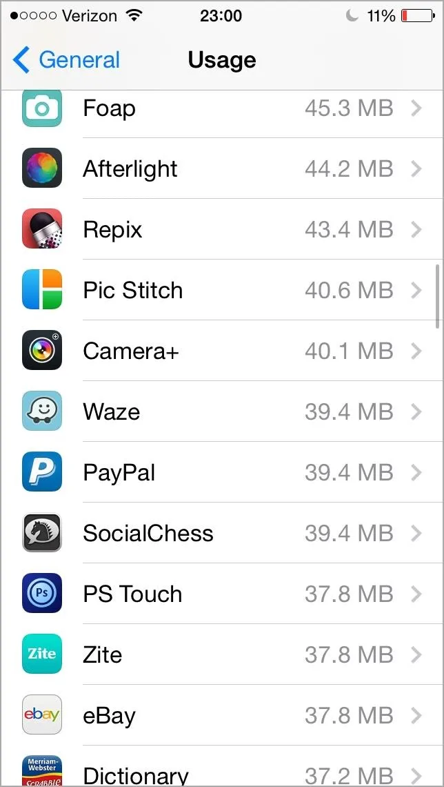 Вес приложений на айфон