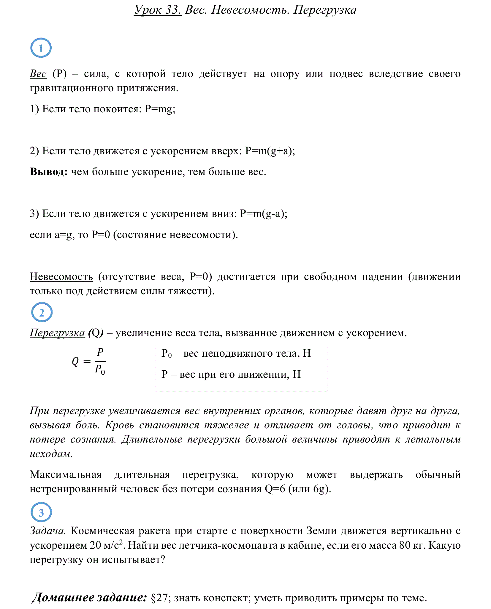 Вес тела при перегрузке