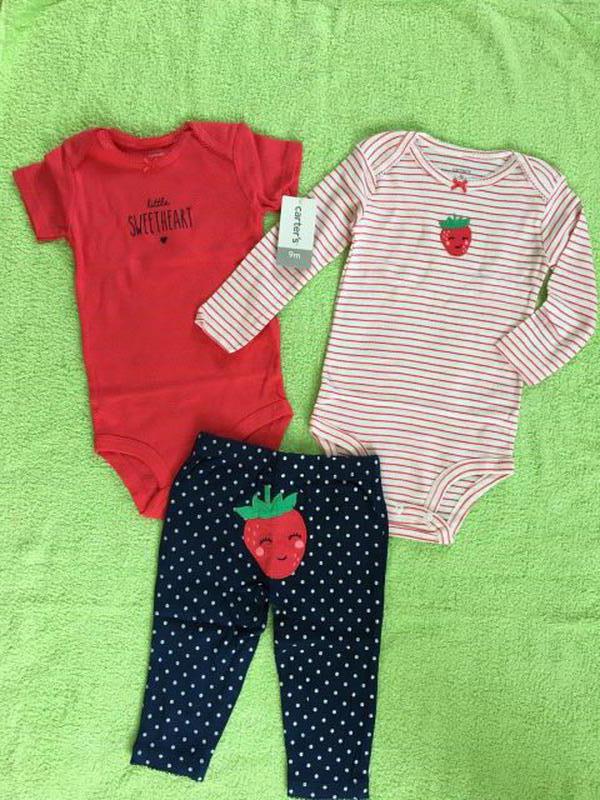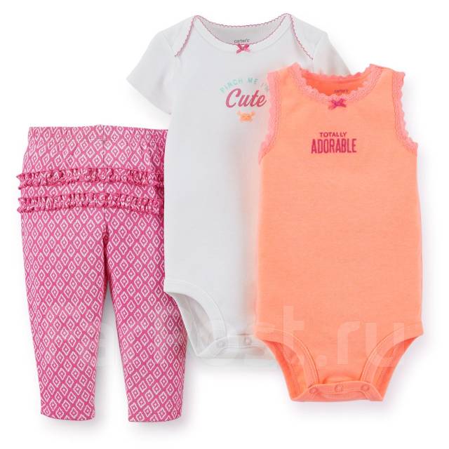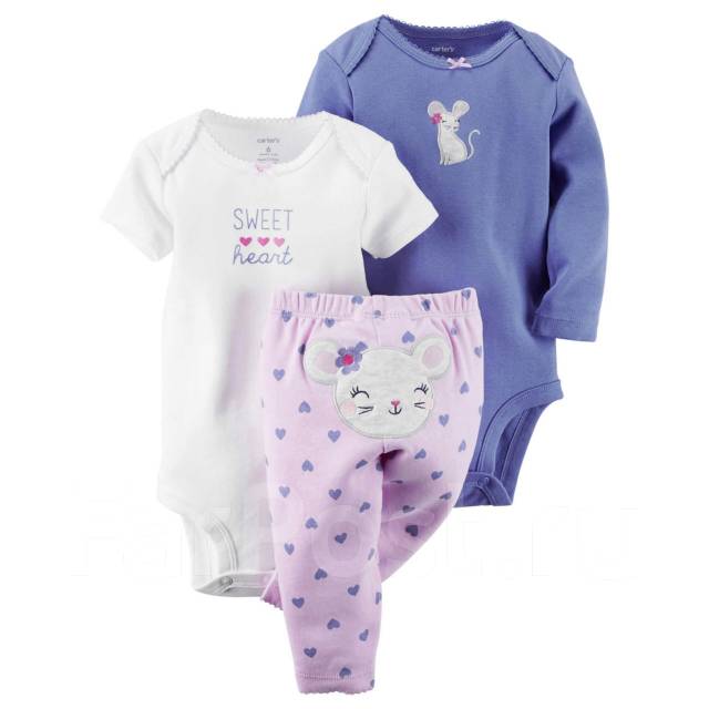 Наборы Картерс из коллекции «Веселые попки", оригинал . 100% хлопок Оригинал, качество хорошее Новое/с бирками/в упаковке Цена за набор: 250 грн Размеры: ФОТО 2: комплект розовый фламинго