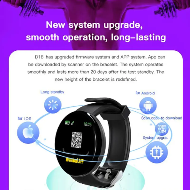 «Vesmatity D18 Smart Watch Men Women Heart Rate Clock Blood Pressure Monitor Smart Sports Waterproof Smart Watch for IOS Android» по лучшей цене на рынке! Всего за 10$ (950рублей)