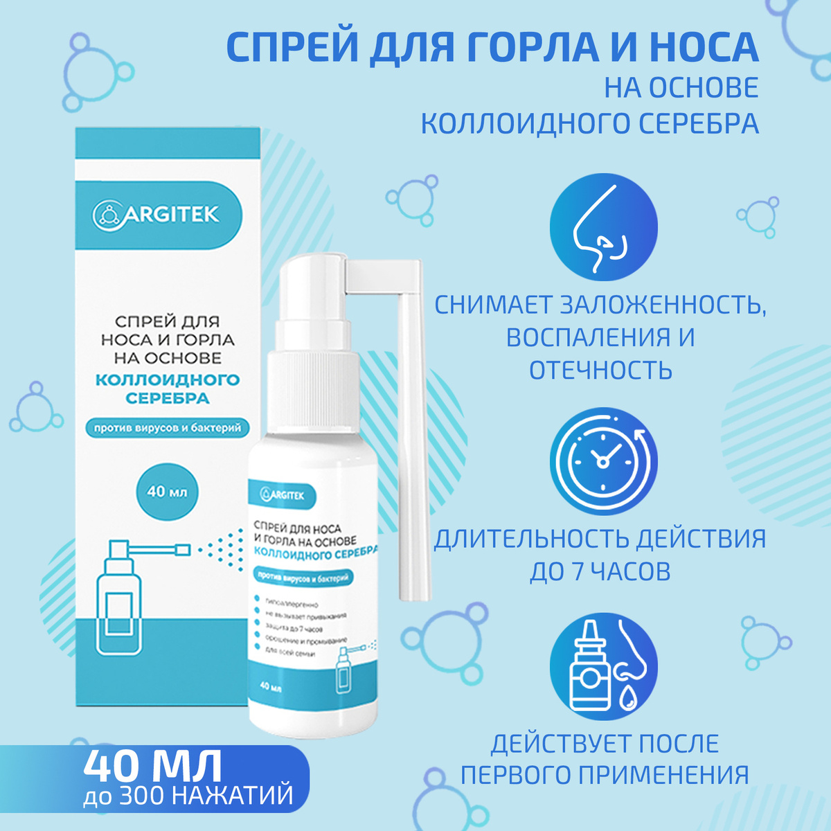 Длительность лечения составляет 7 дней . Побочные действия:Редко - ощущение жжения и сухость в носу . Противопоказания:• Повышенная чувствительность к компонентам виброцила;