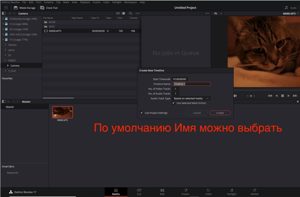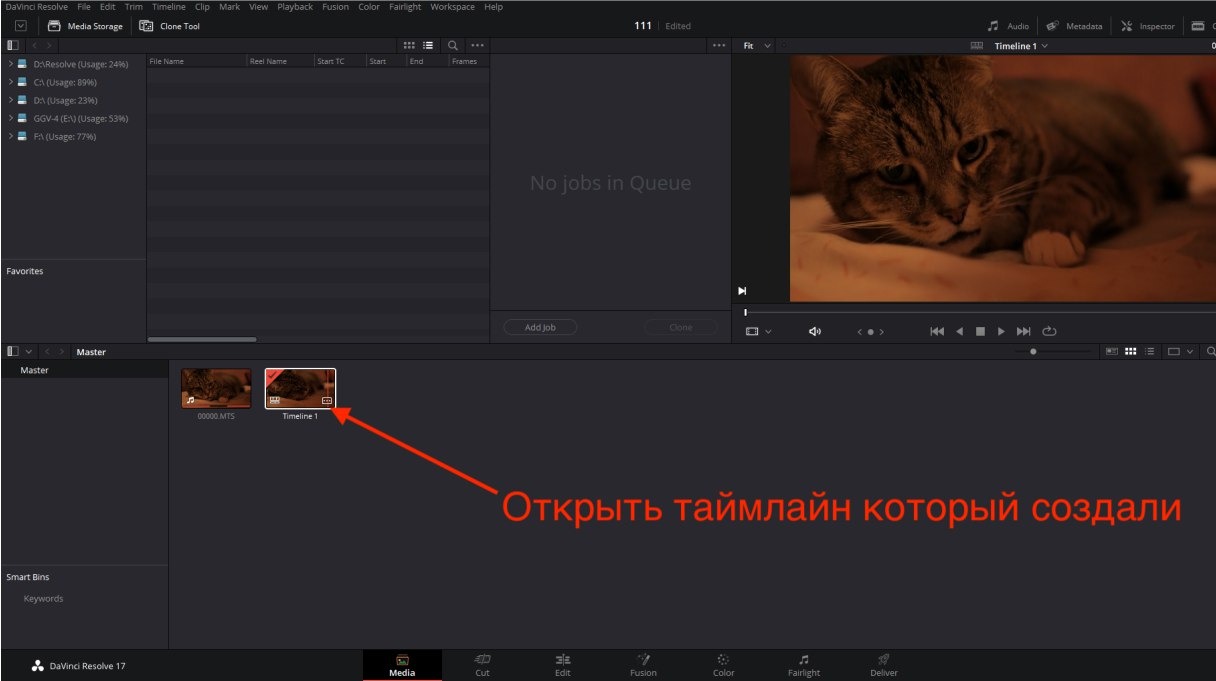 Найти файлы, которые скопировали выше, правой кнопкой на них – Add to media pool