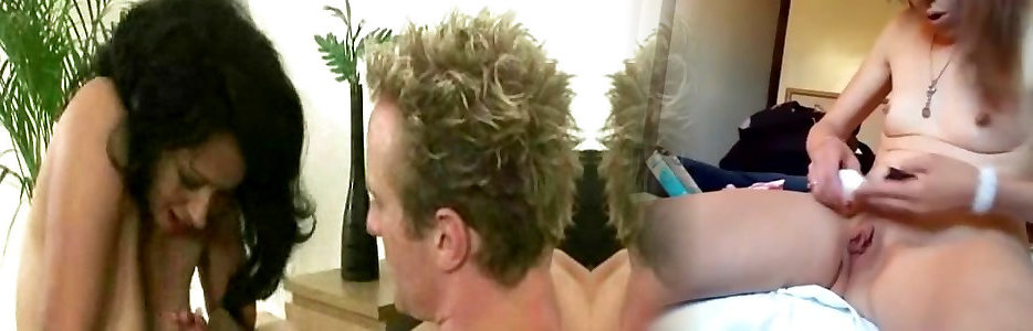 Mit zwei Kerlen treibt es das schwarzhaarige Luder