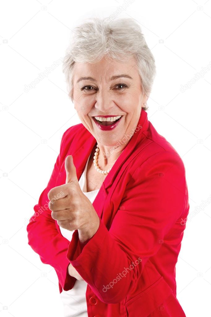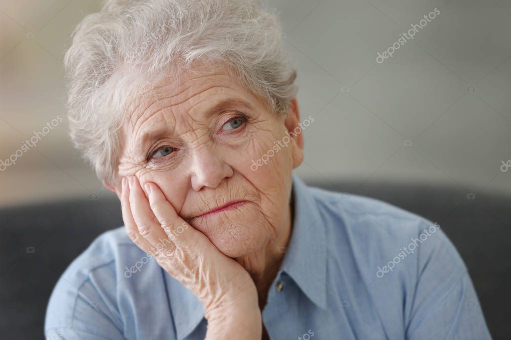 Портрет красивой пожилой женщины с седыми волосами, она ...