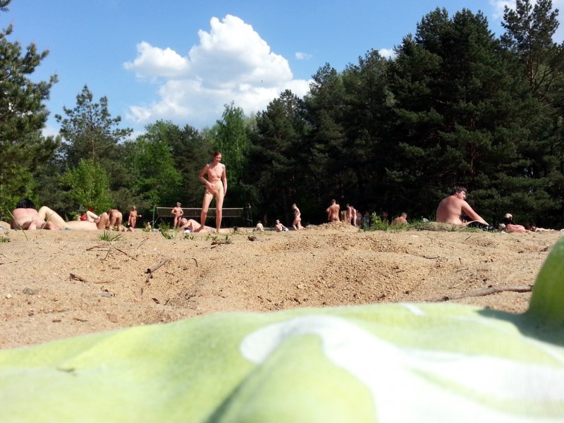 Нудисты на пляже в серебряном бору