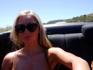 Unschuldig aussehende Blondine mit wunderschönen Titten beim Spielen