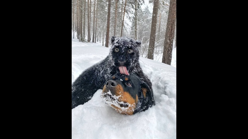 Видео пантерой и ротвейлером