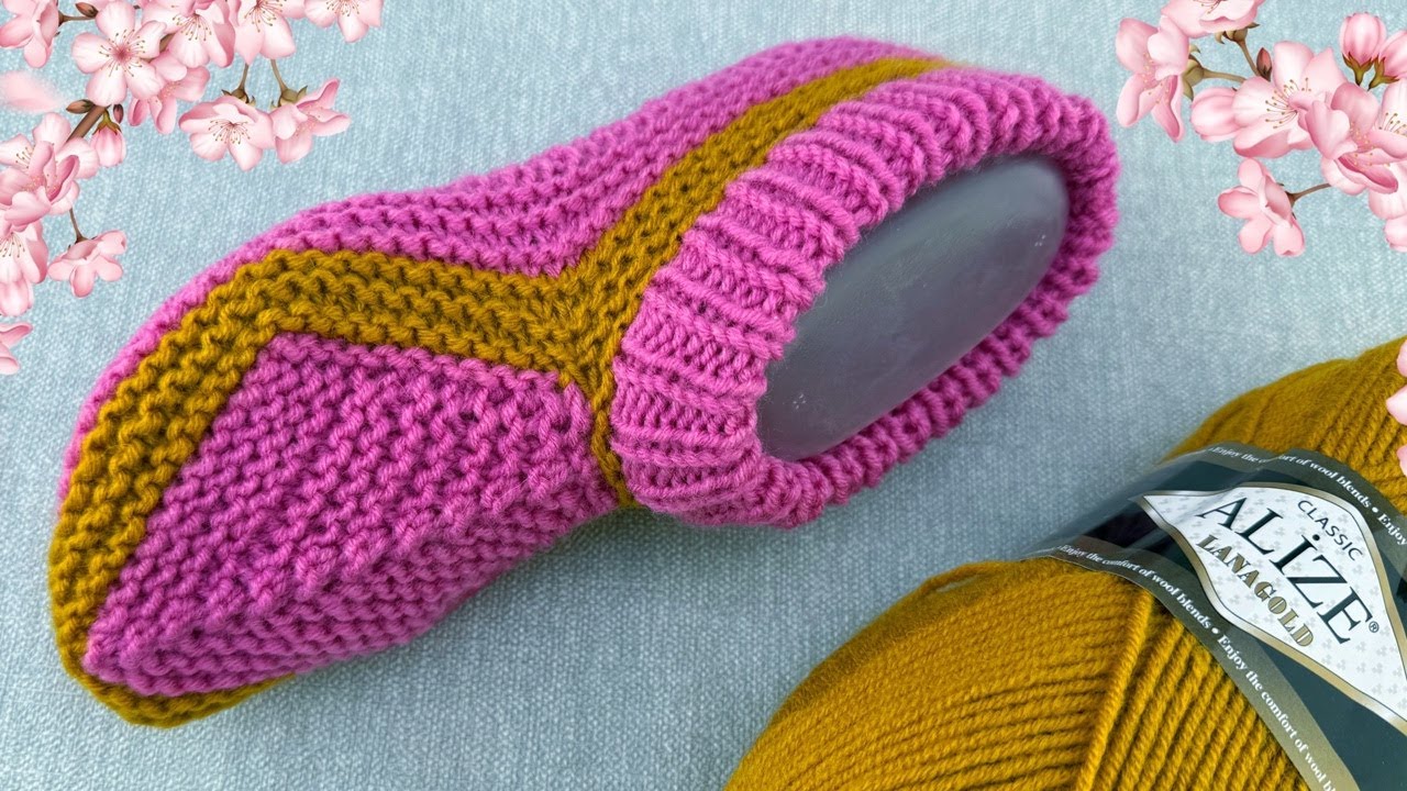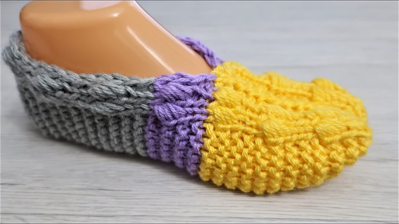 Видео урок вязания спицами тапочек