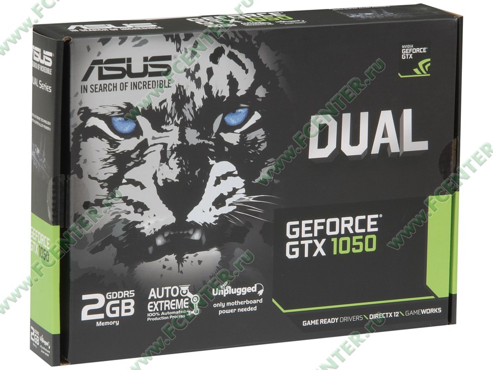 Видеокарта Asus GeForce GTX 1050 DUAL - GTX1050 -O2G-V2 отличается низким тепловыделением, не требует подключения дополнительного питания и предъявляет минимальные требования к системному БП (не менее 300 Вт) .