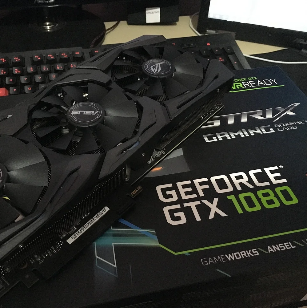 ROG-STRIX- GTX1080 -O8G-GAMING . ROG Strix GeForce ® GTX 1080 OC edition 8GB GDDR5X with Aura Sync RGB for best VR & 4K gaming . 1936 MHz boost clock in OC mode for outstanding performance and gaming experience . DirectCU III with Patented Wing-Blade Fans delivers 30% cooler and 3X quieter performance . ASUS FanConnect features 4-pin GPU-controlled . . .