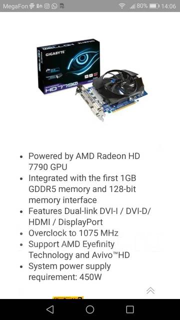 Видеокарта Gigabyte Radeon HD 7750 GV -R775OC- 2GI : объявление о продаже в Москве на Авито . Видеокарта в хорошем состоянии, полностью рабочая раньше стояла в моём компе . Потом года два я ее не использовал,по причине того что купил новую