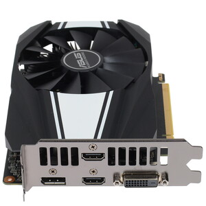 Начать хочется с модели с одной из самых простых систем охлаждения - asus geforce gtx 1660 super phoenix oc . Это очень компактная видеокарта, длина ее составляет всего 17 .5 см .