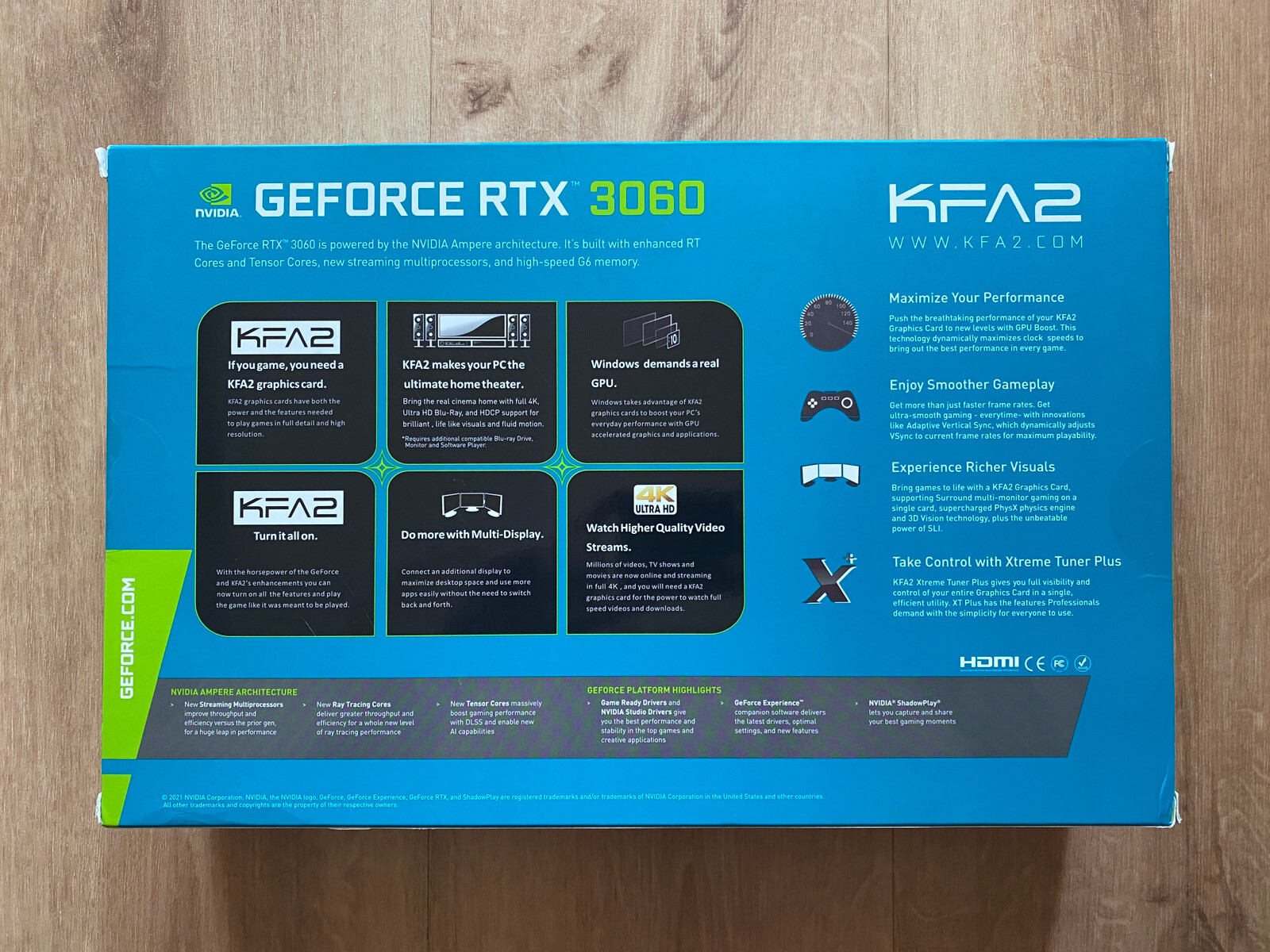KFA2 GeForce RTX™ 3060 (1-Click OC) 12GB GDDR6 192-bit DP*3/HDMI/ Like all GeForce RTX™ Series GPUs, the GeForce RTX™ 3060 supports the trifecta of GeForce gaming innovations: NVIDIA DLSS, NVIDIA Reflex and NVIDIA Broadcast, which accelerate performance and enhance image quality .