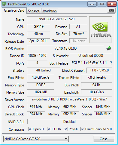 NVIDIA GeForce GT 520 specs - GPUZoo