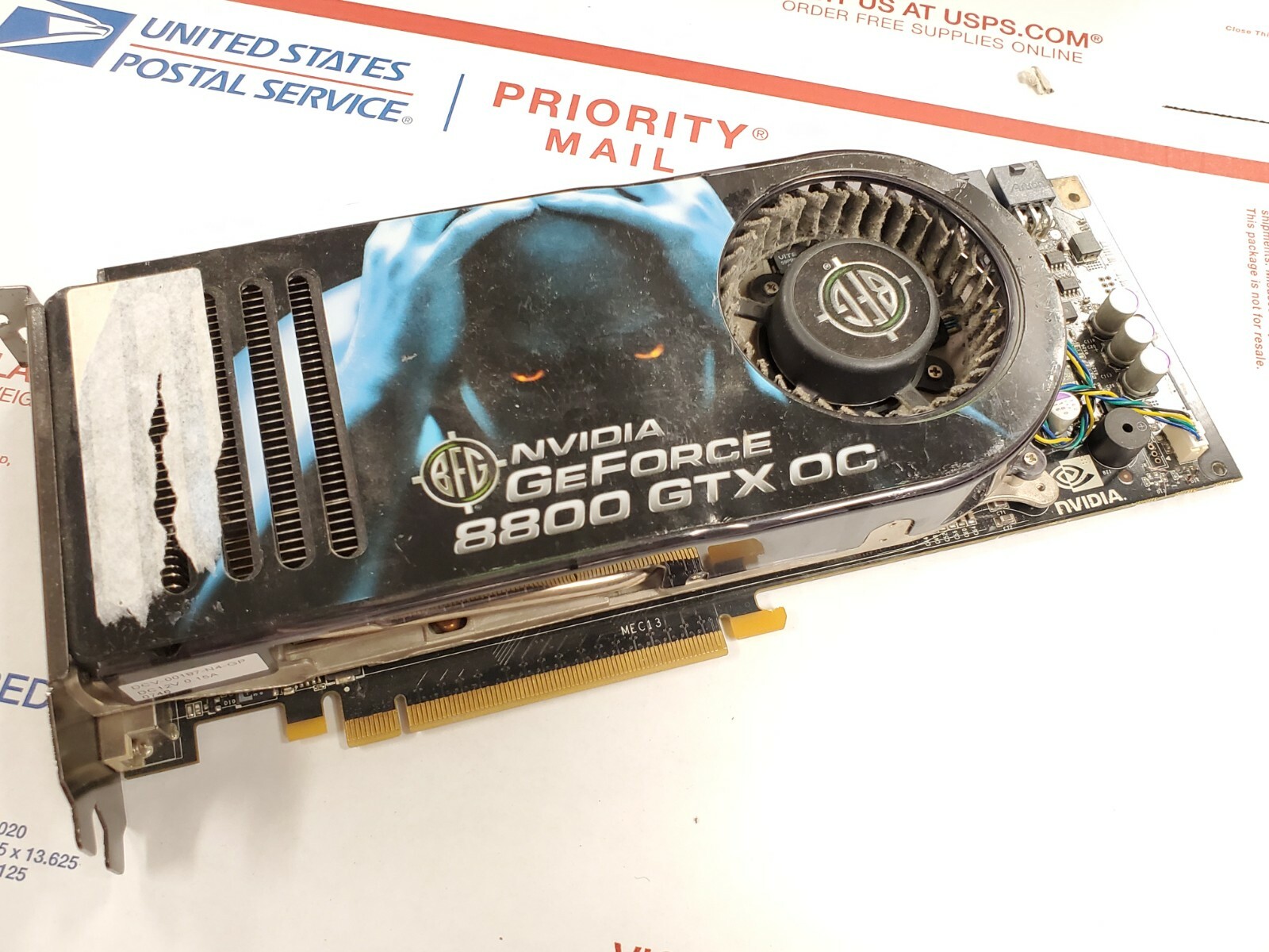 NVIDIA has paired 768 MB GDDR3 memory with the GeForce 8800 GTX, which are connected using a 384-bit memory interface . The GPU is operating at a frequency of 576 MHz, memory is running at 900 MHz . Being a dual-slot card, the NVIDIA GeForce 8800 GTX draws power from 2x 6-pin power connectors, with power draw rated at 155 W maximum .