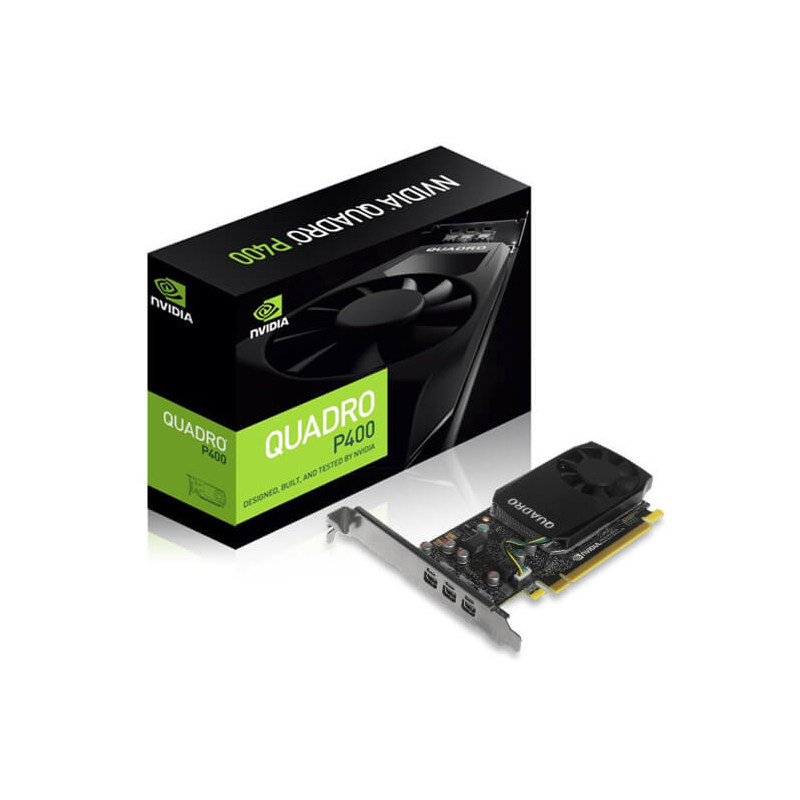 The new NVIDIA ® Quadro ® P400 combines the latest NVIDIA Quadro Pascal GPU architecture with 2GB of ultra-fast on-board memory to deliver great performance for a range of professional applications . A single-slot, low-profile form factor makes it compatible with even the most space and power-constrained chassis . Support for three 4K displays (4096 x 2160 at 60Hz) with HDR color gives you a . . .