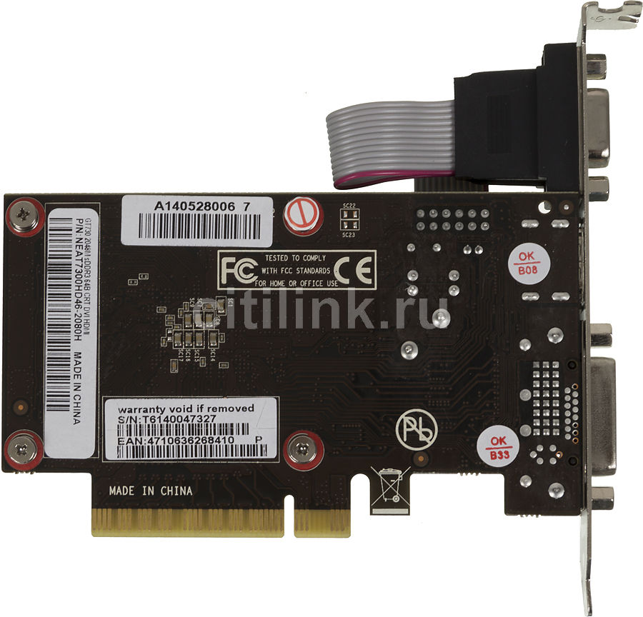NVIDIA GeForce GT 730 , базовая частота 700 МГц, 96sp, частота памяти 900 МГц, 128 бит, 2 слота, VGA, DVI, HDMI . . 288 .44 руб . . . . Видеокарта Palit GeForce GT 730 2GB DDR3 (NEAT7300HD46-2080H)