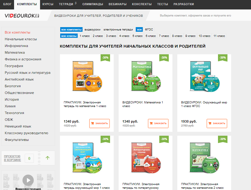 Видеоуроки с тестами