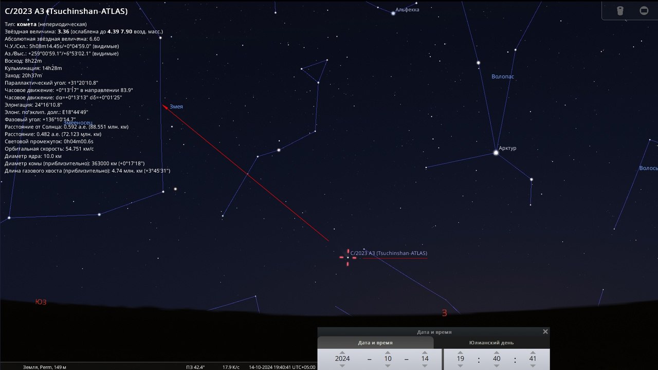 Видимость кометы c 2025 цзыншинчан атлас сейчас