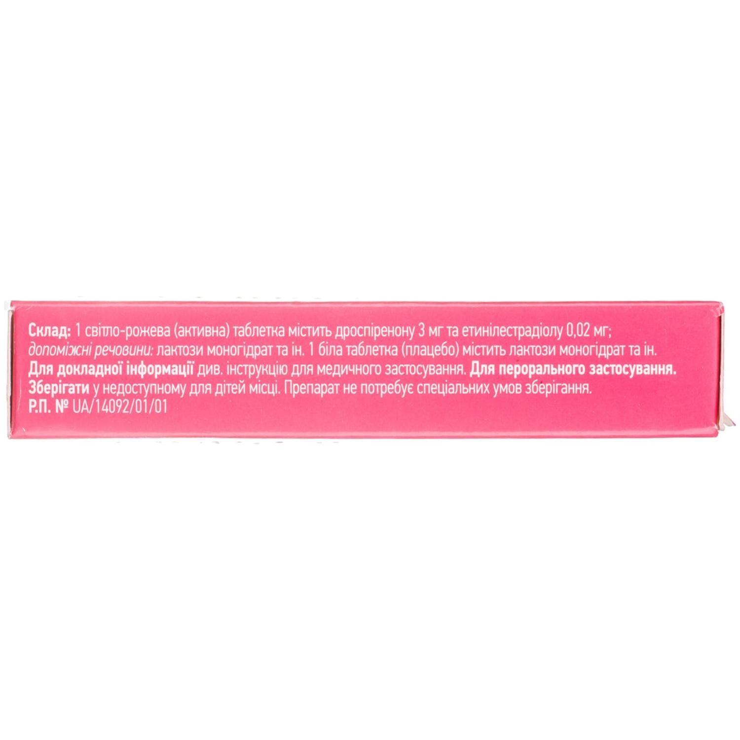 Видора ® микро, таблетки, покрытые пленочной оболочкой, 3 мг+0 .02 мг, №28 - 28 шт . - блистер - пачка картонная в блистере: таблетки 2 видов - розовые (дрисперидон 3 мг + этинилэстрадиол 20 мкг) - 21 шт ., белые (плацебо) - 7 шт ., Производитель: Лабораториос Леон Фарма С .А . (Испания)
