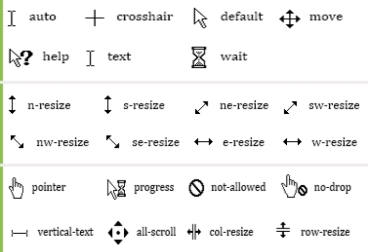 Виды курсора css