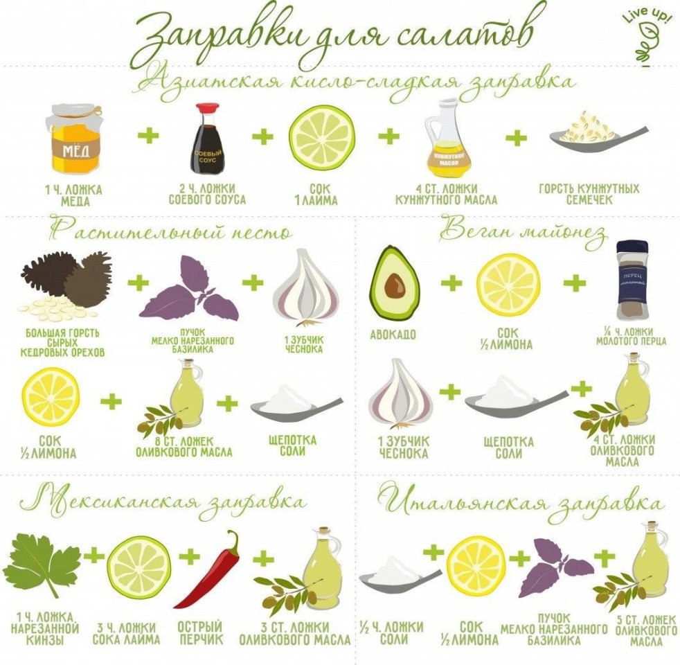 Виды заправок салата