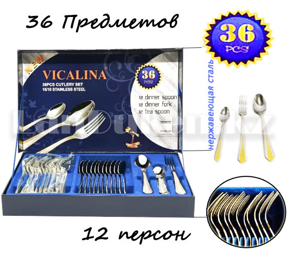Набор столовых приборов 36 предметов на 12 персон Vicalina VICALINA- это сочетание эстетики и практичности Красота и высокое качество этих столовых приборов удовлетворят даже самых взыскательных ценителей домашней роскоши . Они займут достойное место на кухне или в столовой, где хозяйствует настоящая королева кулинарного искусства .