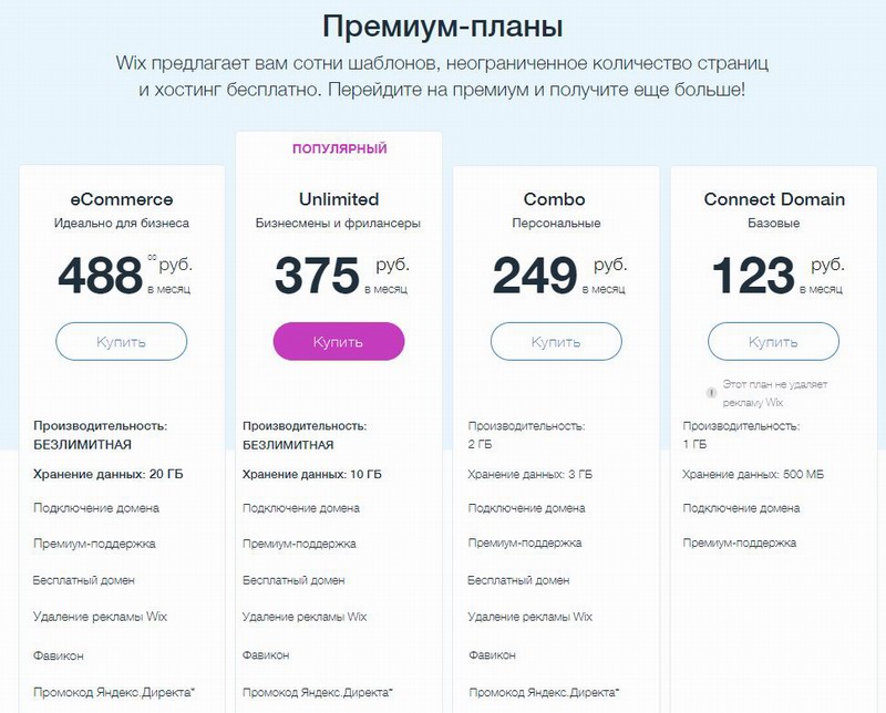 Информация о ценах Wix | Переход на премиум-план | Wix .com