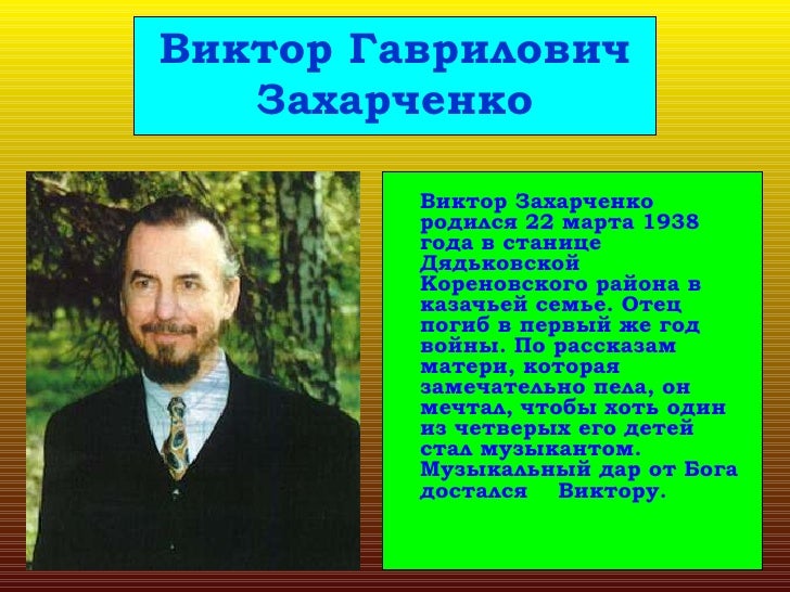 Захарченко Виктор Гаврилович - Российский Деятель Культуры . . .