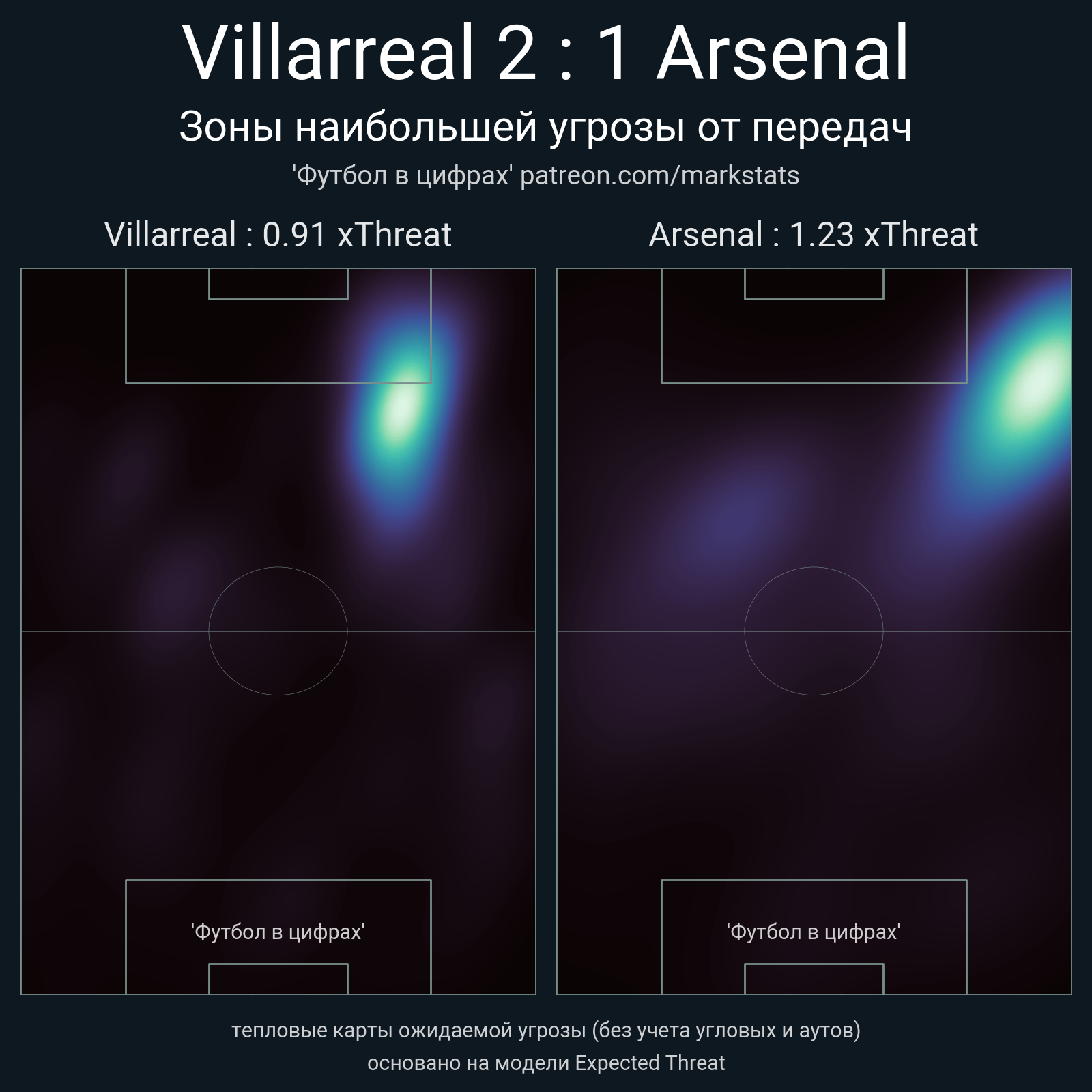 ▪ xThreat без учета угловых: 0.91 - 1.23
