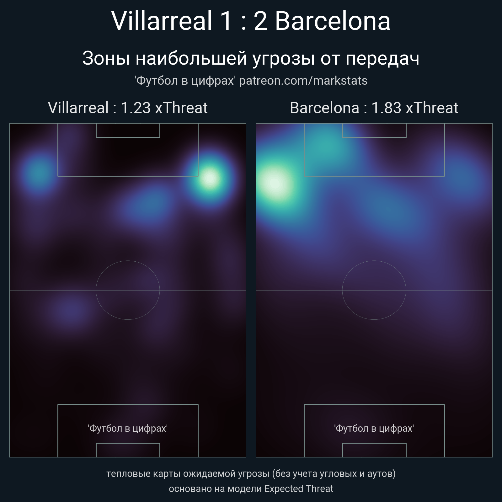 ▪ xThreat без учета угловых: 1.23 - 1.83