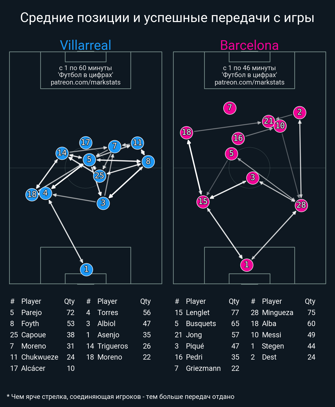 ▪ 20 успешных передач из 26 попыток (5 под удар, 4 с продвижением, 9 на трети соперника)
