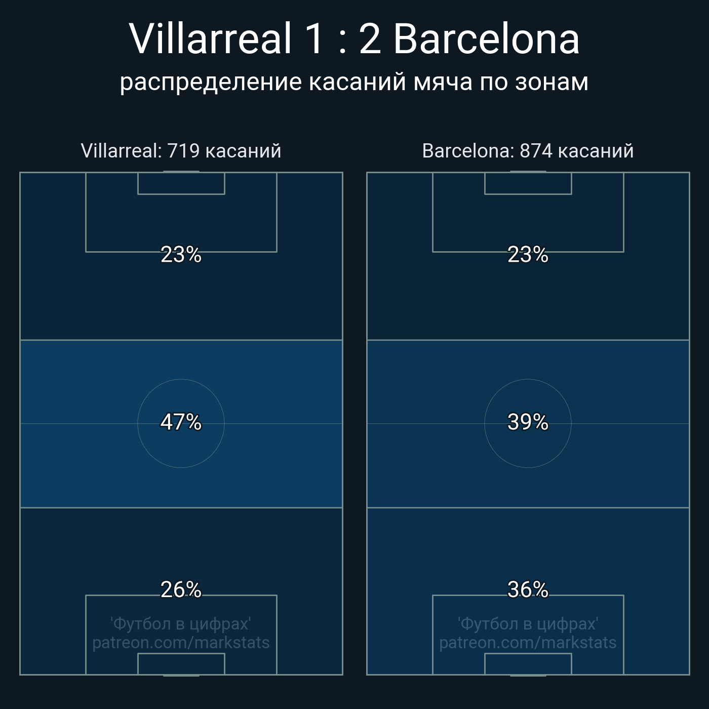Футбол в цифрахСтатистика матча Villarreal - Barcelona