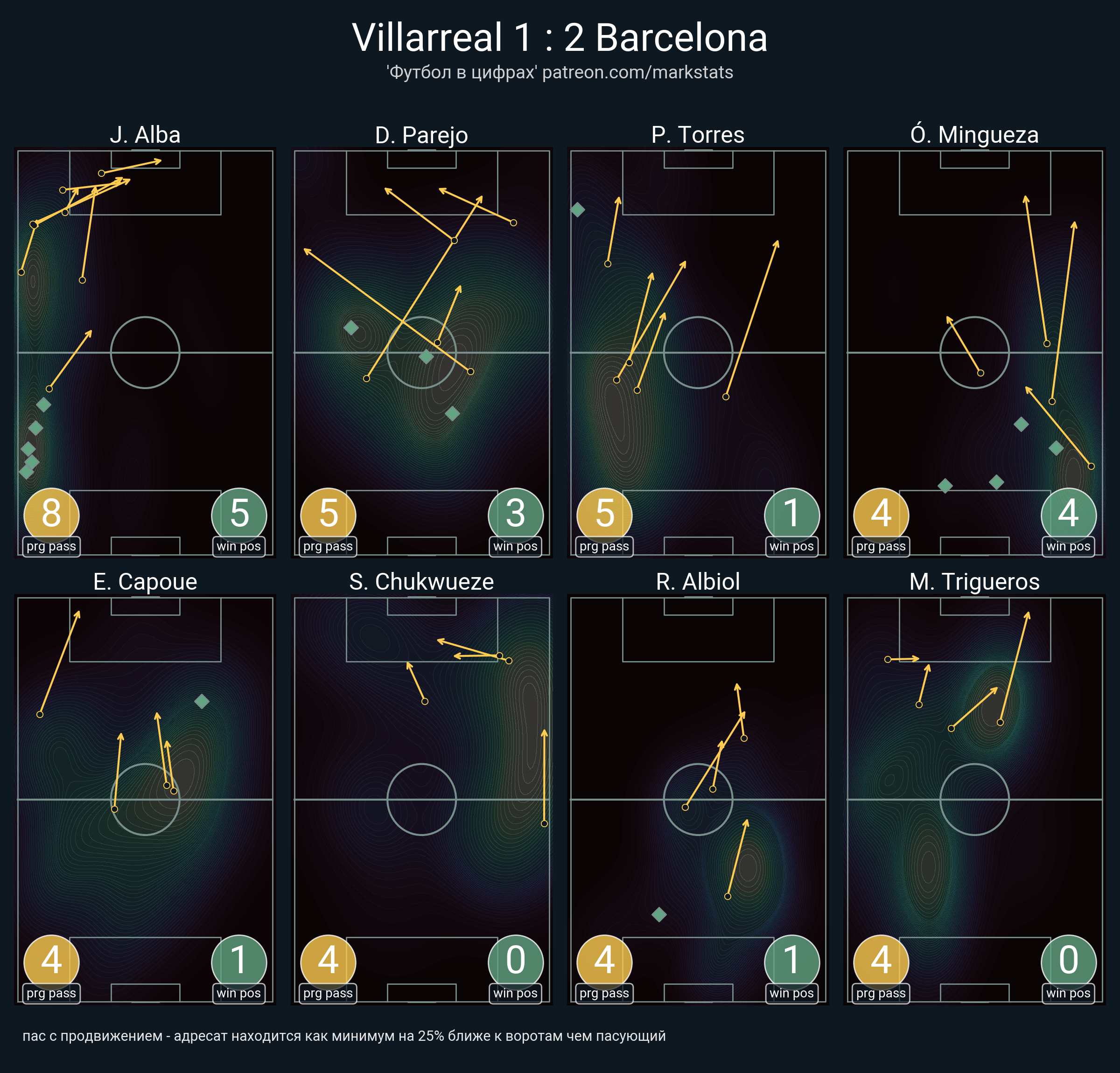 ▪ 7 успешных передач из 9 попыток (3 с продвижением, 2 на трети соперника)