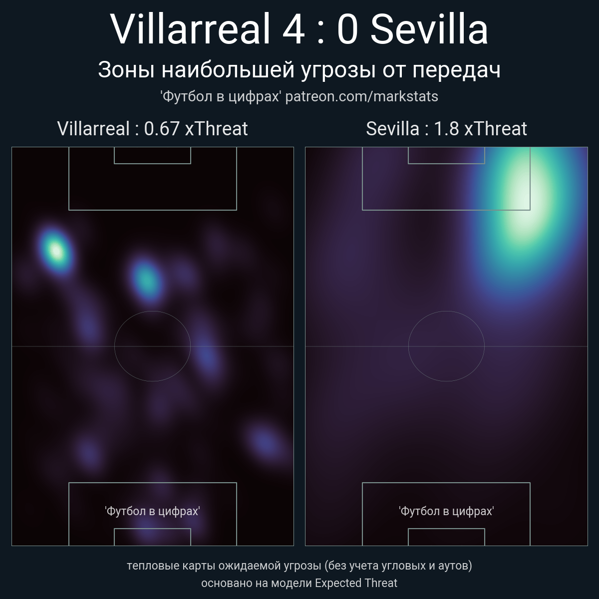 ▪ xThreat без учета угловых: 0.67 - 1.8