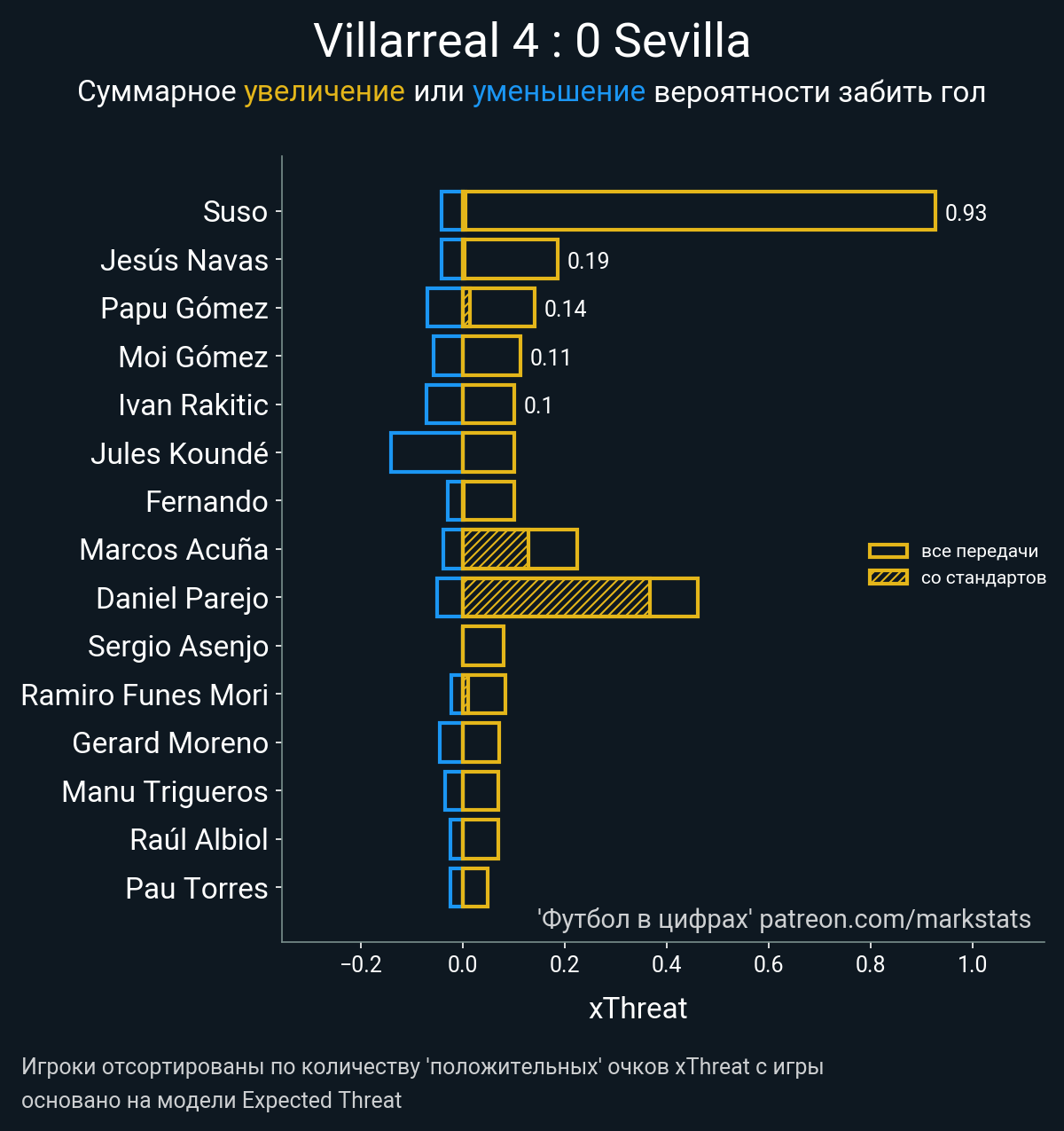 Очки xThreat с игры: