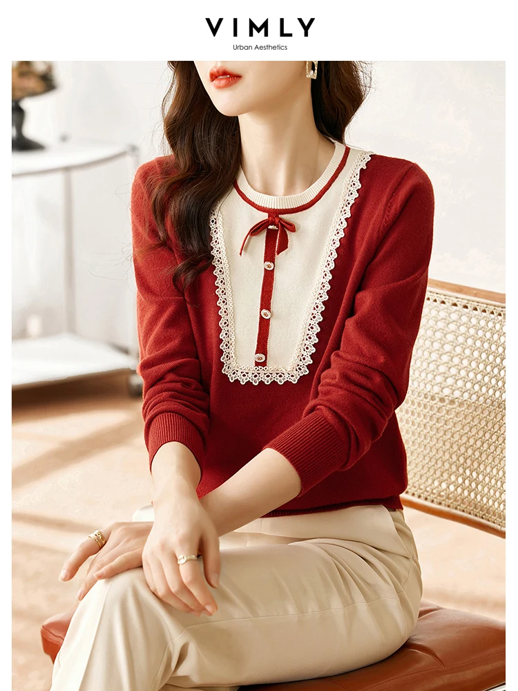 «Vimly 2023 Spring Elegant Red Women's Sweater Korean Style Pullovers Long Sleeve Knit Tops with Chic Bow New In Knitwears 71293» по лучшей цене на рынке! Всего за 44$ (4180рублей)