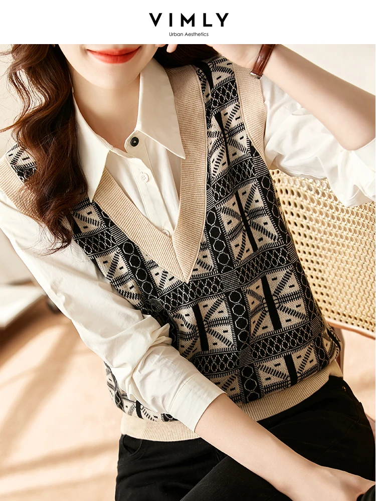«Vimly 2023 Spring Knitted Sweater Vest Sleeveless V Neck Pullover Knitwears Knit Tops New In Outerwear Clothes for Women 71302» по лучшей цене на рынке! Всего за 31$ (2945рублей)