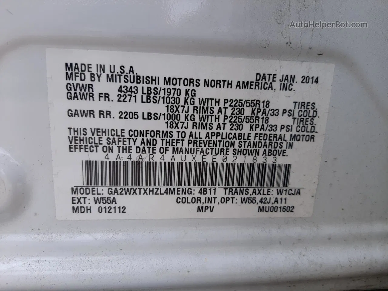 Vin mitsubishi outlander