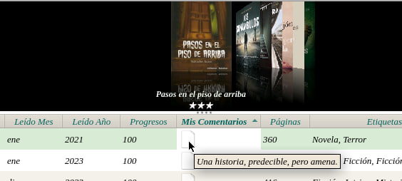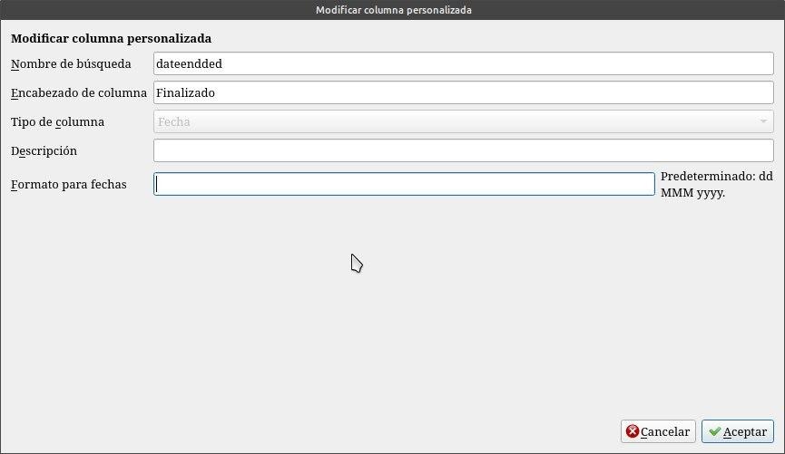 Terminada la creación de las columnas personalizadas damos en aceptar y se nos va a reiniciar Calibre, para que haga efecto estos cambios, las columnas aparecerán en las ultimas posiciones, deberemos posecionarlas, apretando con el mouse sobre la columna y desplazarla a sus lugares a elección.