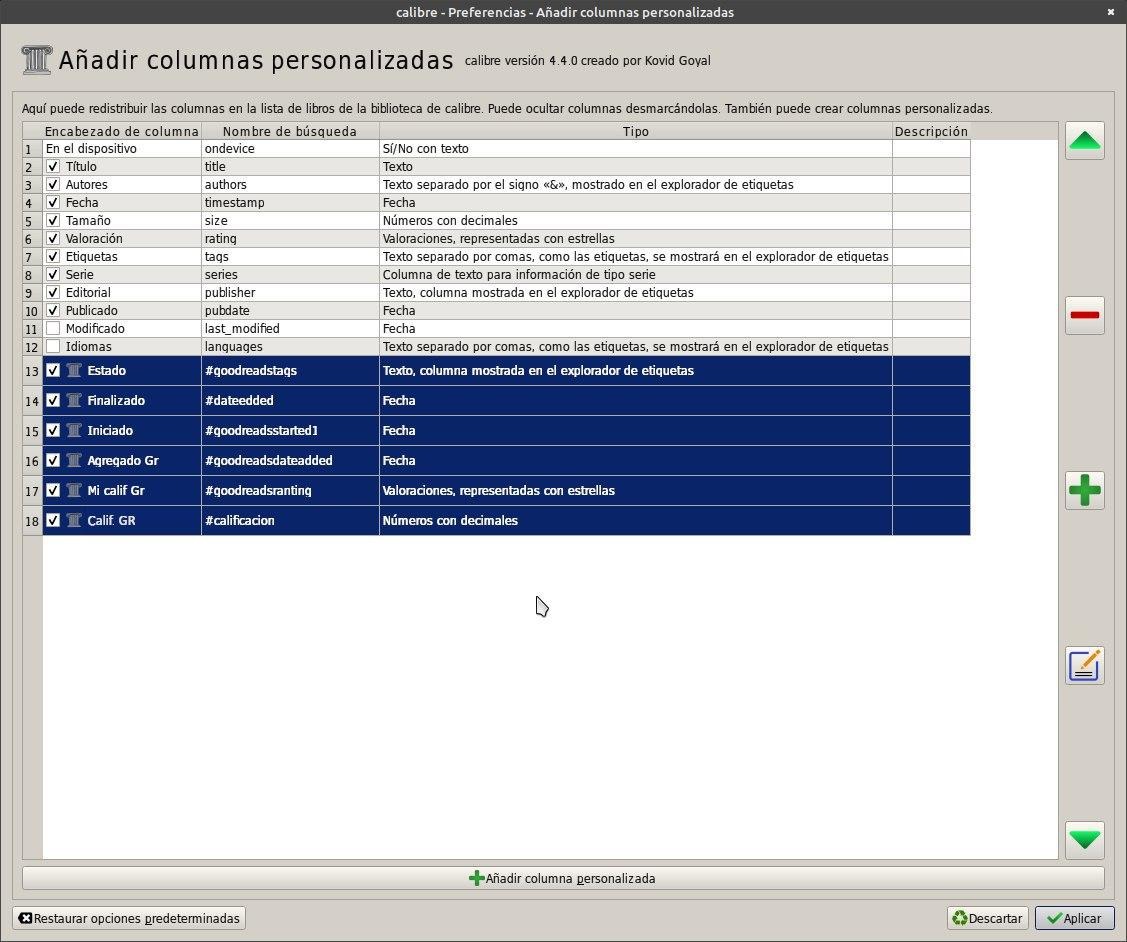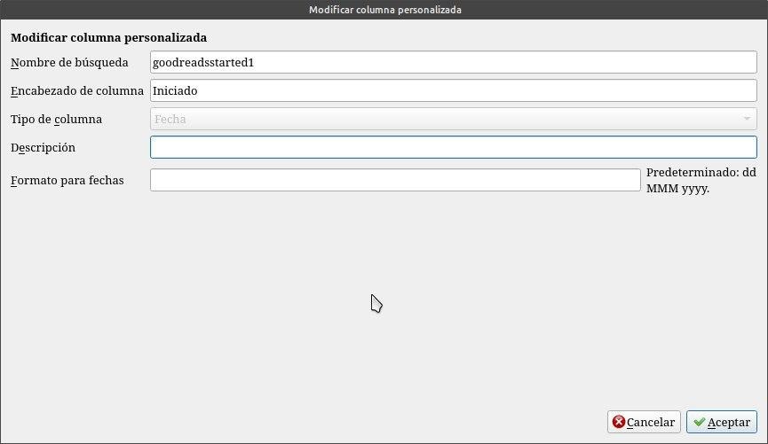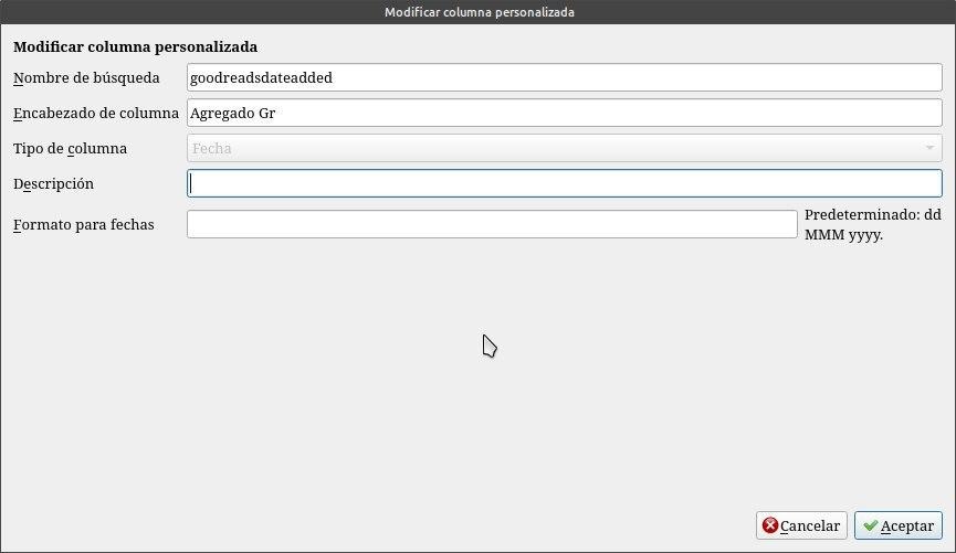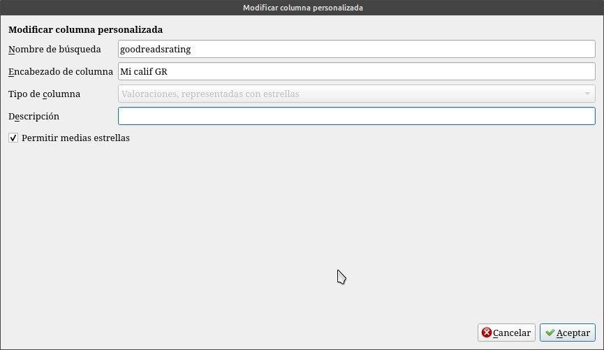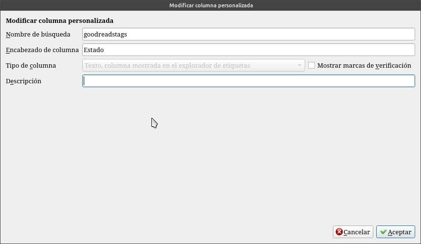 Tendremos que ante todo configurar calibre para que sea compatible con goodreads, agregándole algunas columnas personalizadas.