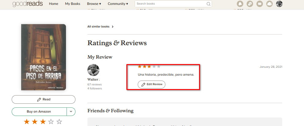 Donde hemos dejado el comentario del libro que hicimos en goodreads lo veremos en calibre.