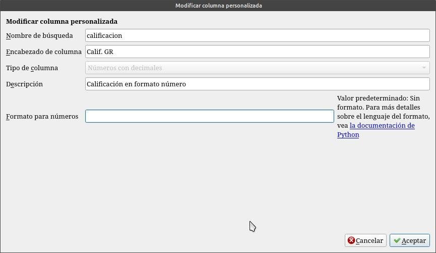 Creamos una que el nombre sea calificación , el encabezado Calif. GR, tipo de columna números con decimales.